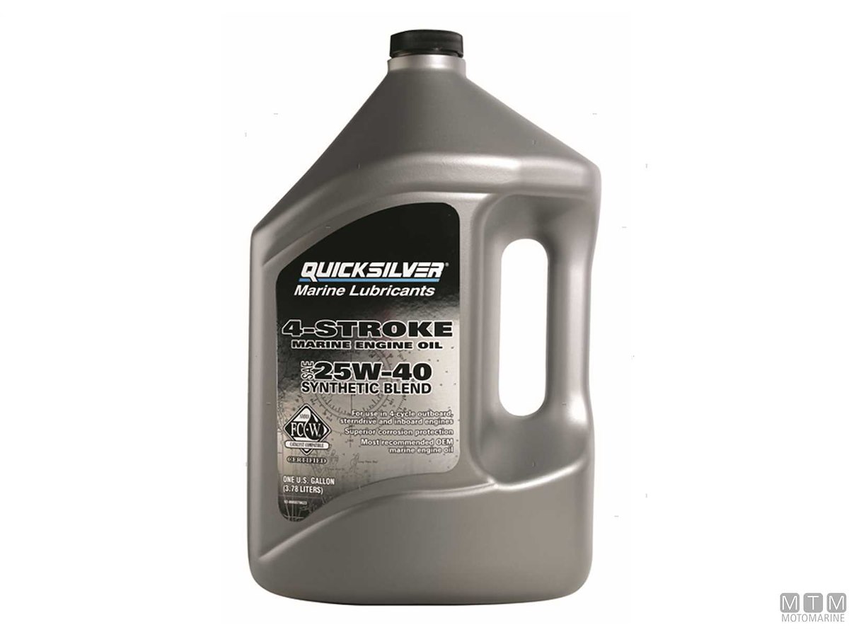 Olio motore 4 tempi sintetico SAE 25W-40 per motori entrobordo, fuoribordo e entro/fuoribordo a iniezione.