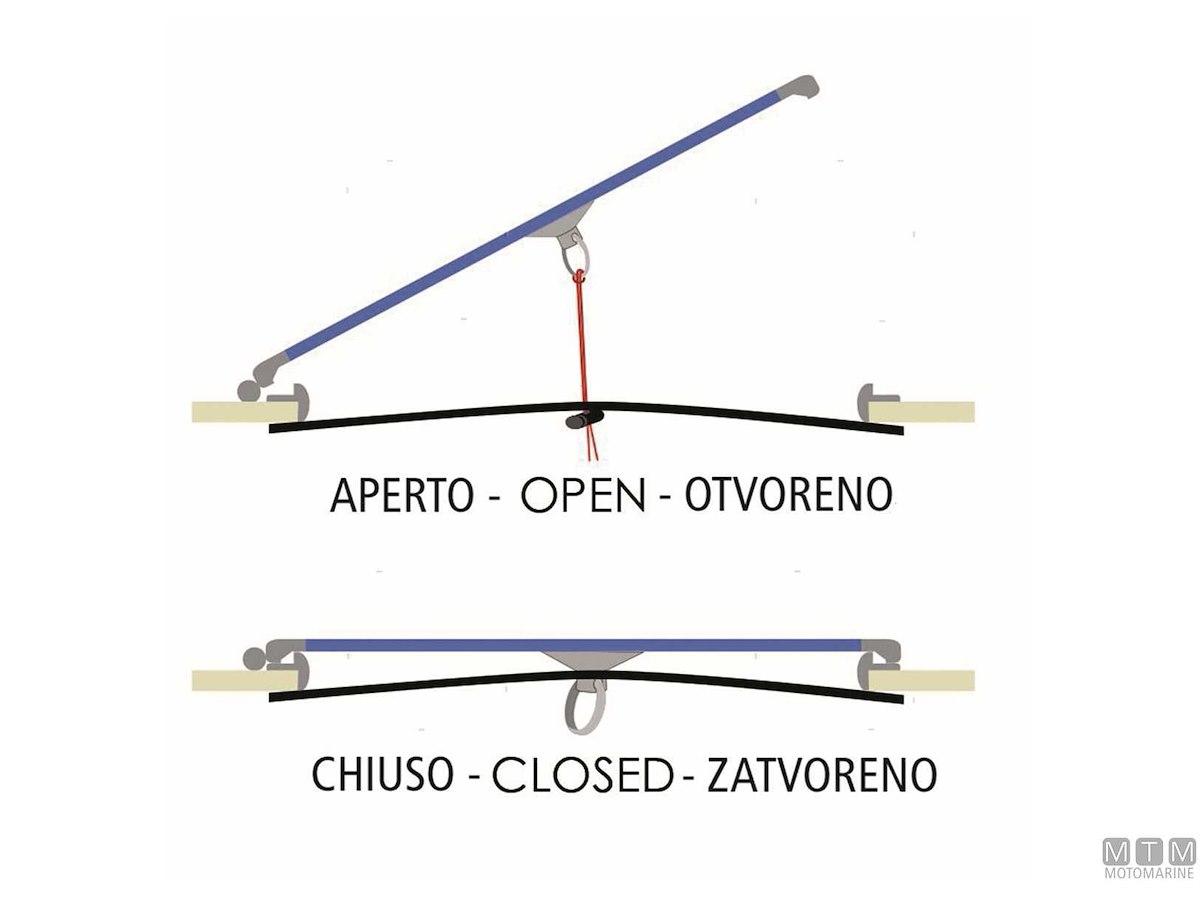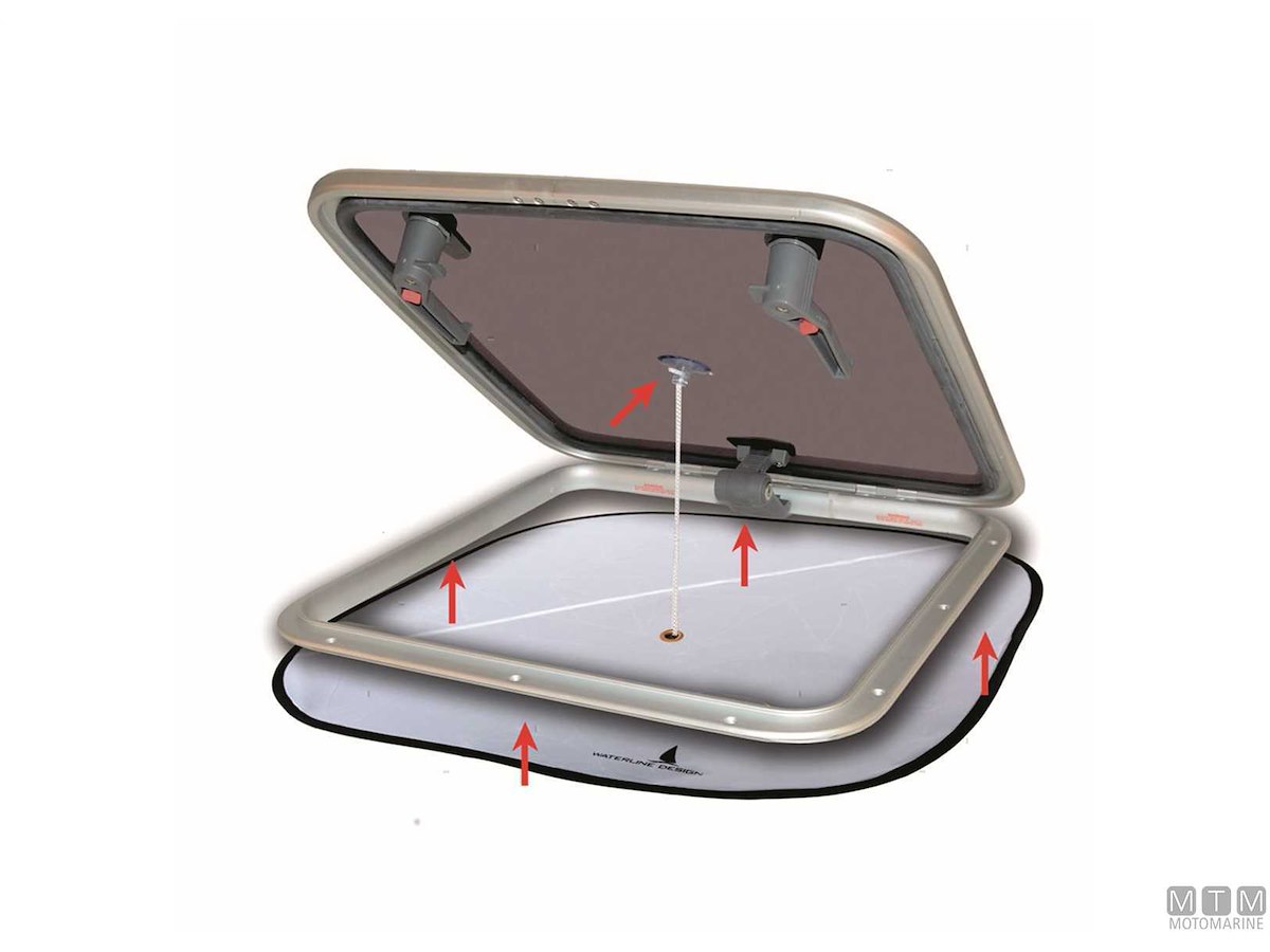 Tende oscuranti per osteriggi disponibili in tre dimensioni progettate con la funzione di rendere buio l'interno delle barche per una buona notte di sonno e anche di arieggiare la barca senza far entrare zanzare o altri insetti.