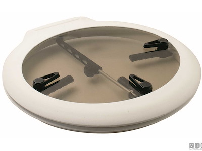 Osteriggio con cornice in Saralon completo di controcornice e maniglie di sicurezza esterne. Altezza su coperta 28 mm. Attenzione: disponibile solo l'oscurante, misura Escape 20 esterno 570 mm.