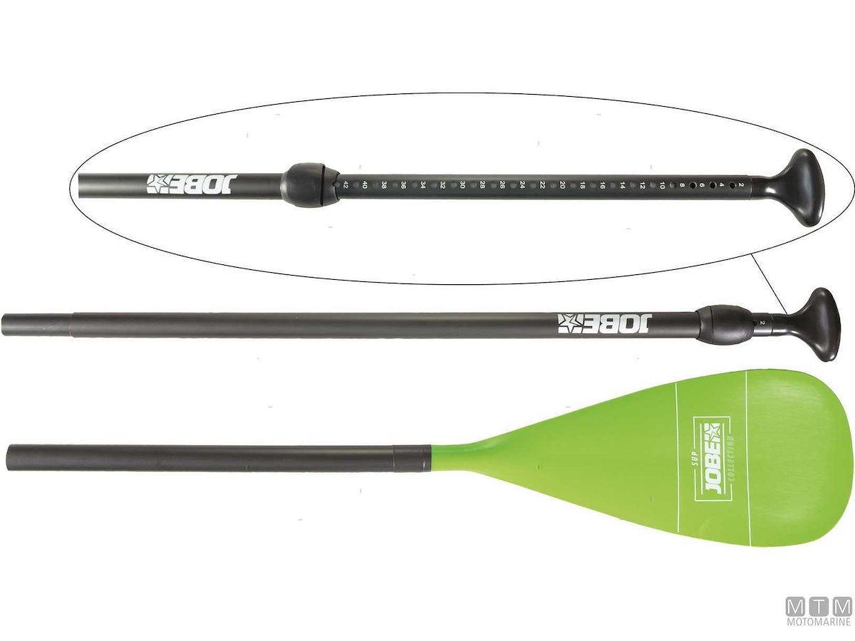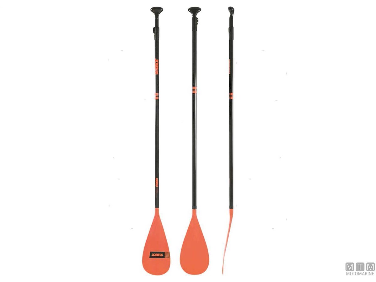 Pagaia divisibile Jobe ideale per Sup e natanti da acqua sport. Leggera e resistente, con pale rinforzate in Plastica e manico T-grip allungabile in Alluminio Anodizzato oppure in Carbonio misto a Vetroresina.