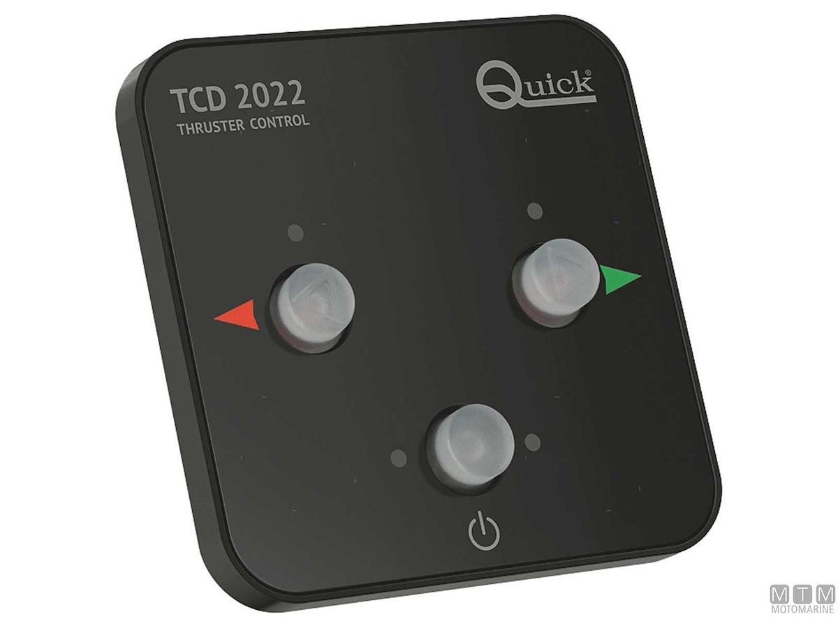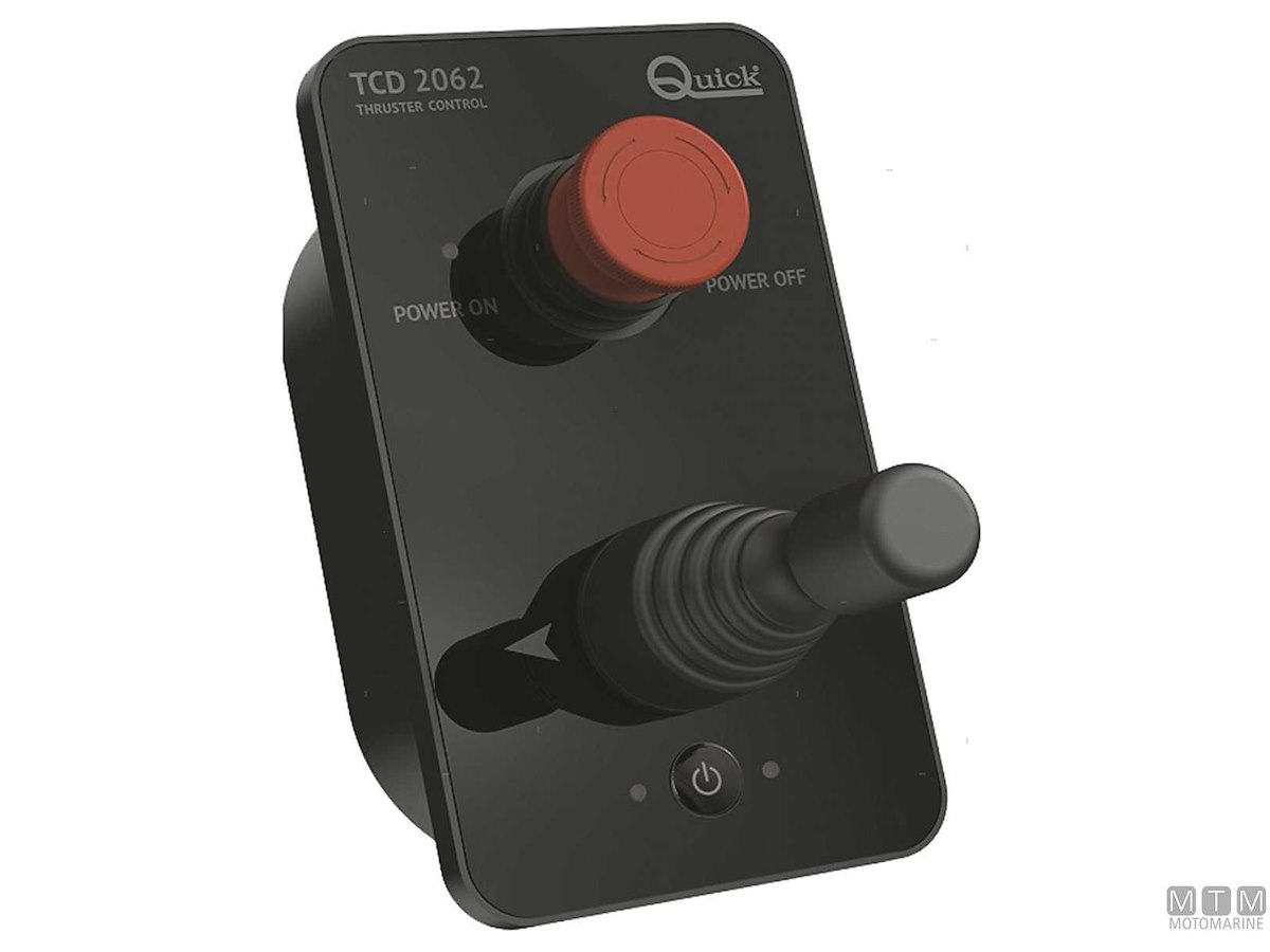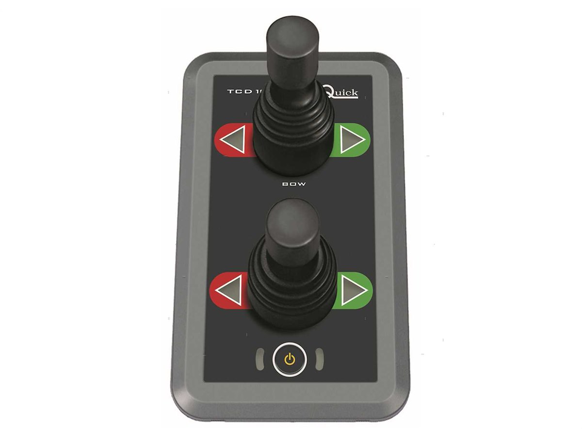 Pannelli comando TCD Quick per controllare le eliche di manovra tramite pulsanti o Joystick. Interfaccia utente semplice ed intuitiva. Alimentazione universale 8-30 Vdc. Possibilità di collegare più comandi TCD in parallelo. Facilità di installazione tramite connettore a 2 cavi (prolunghe opzionali). Sistema di priorità e disabilitazione automatiche. Protezione contro l’inversione di polarità, cortocircuito in uscita, attività prolungata del motore e interruzione del cablaggio di comando del propulsore.