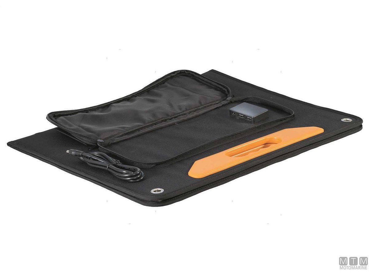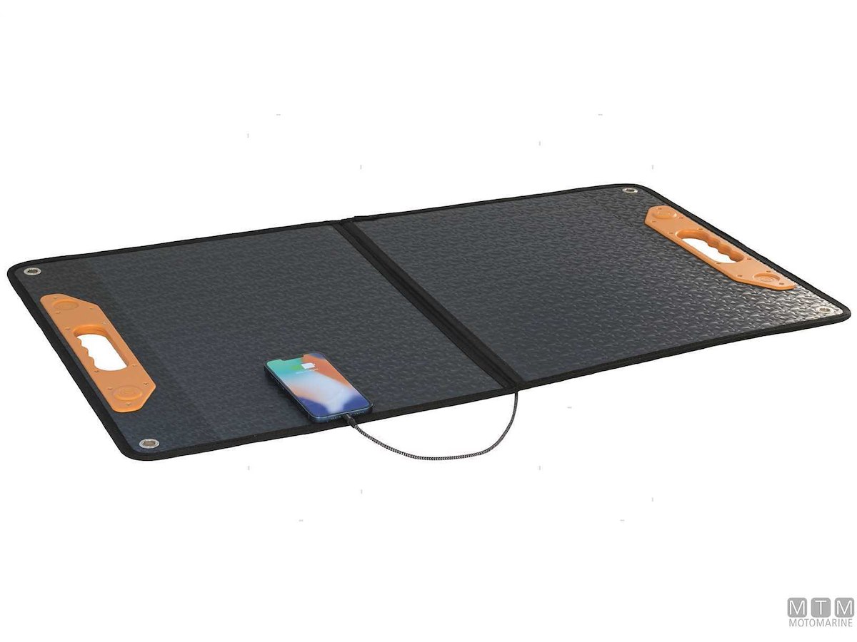 Pannelli solari pieghevoli leggeri e robusti con celle di silicio monocristallino di alta qualità e ad alta efficienza per una migliore resa che può raggiungere il 22%. Pieghevoli e portatili come una cartella con maniglia, grazie al treppiede in dotazione possono essere posizionati e orientati verso il sole, oppure fissati in posizione con nastro bi-adesivo o con viti. Utilizzati anche per caricare telefoni cellulari, laptop o altri dispositivi di ricarica USB.Completi di uscita cavo USB-A, 5V2A, caricabatteria per cellulare e computer-B, 5V3A.Con 2 cavi da 90 cm e connettori MC4. Da completare con regolatore di carica in base al voltaggio delle batterie da caricare (12 o 24V) e alla somma degli amperaggi (Imp) di ogni singolo pannello.