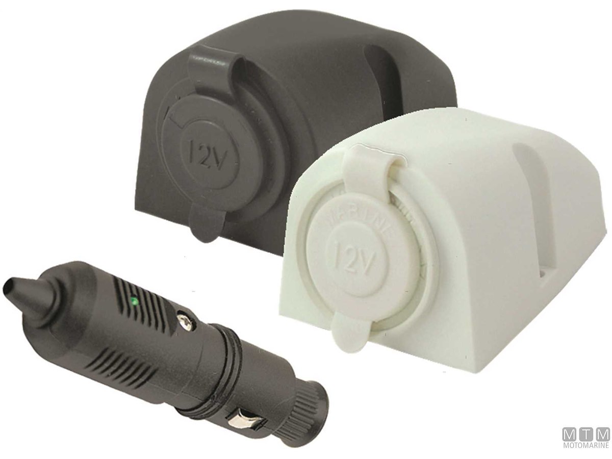 Pannello misura socket in plastica stabilizzata UV con presa 12V. Completo di cappuccio di protezione e sistema di blocco a rotazione della spina.