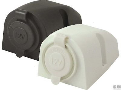 Pannello misura socket in plastica stabilizzata UV con presa 12V. Completo di cappuccio di protezione e sistema di blocco a rotazione della spina. Dimensioni 56 x 80 x H49 mm.