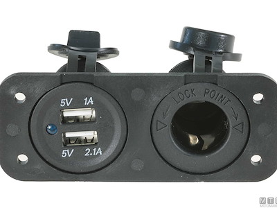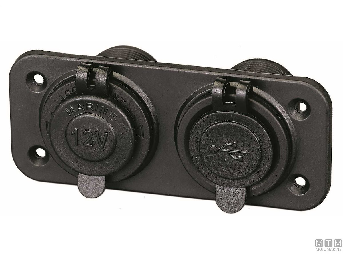 Pannello misura socket con presa 12V e presa USB doppia. Completo di cappucci di protezione. Cod.: 2106024