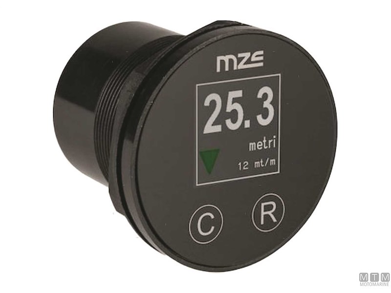 Pannello contametri impermeabile per visualizzare i metri di catena calati. Montaggio su pannello con ghiera filettata dia 50 mm, altezza incasso 55 mm. Alimentazione universale 12/24V, compatibile con ogni tipo di verricello.