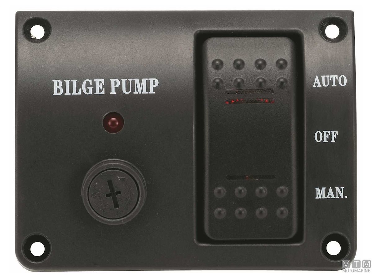 Pannello 12V con fusibile e interruttore illuminato a 3 posizioni: Automatic - Off - Manual con modulo "Fail-safe" (ritorno automatico su Off da Manual).