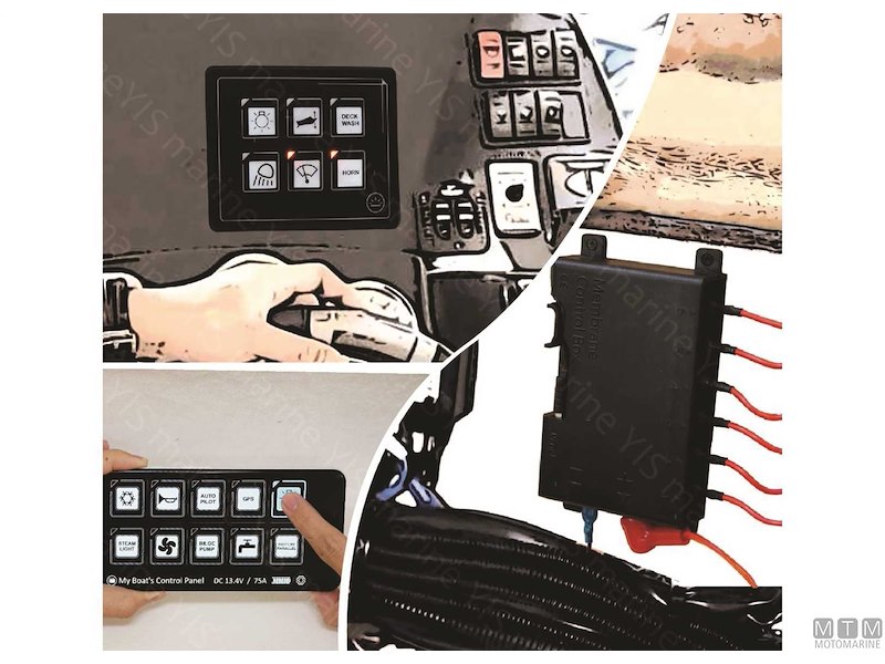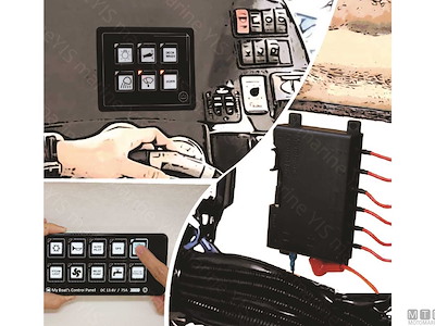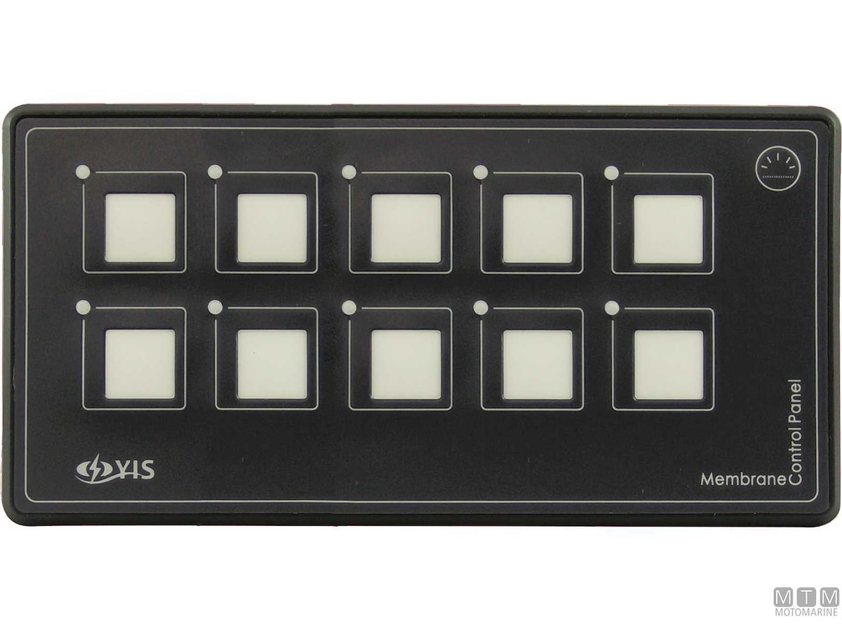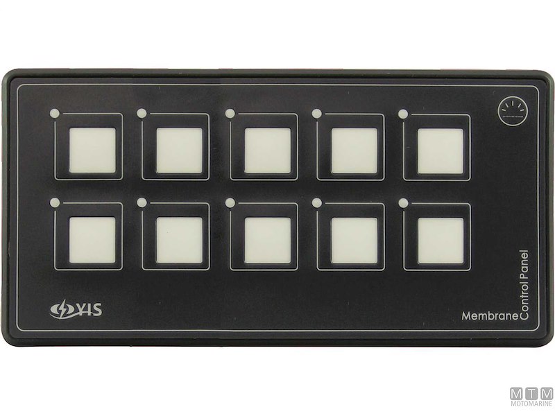 Pannello digitale 12/24V compatto e impermeabile IP67. Comprende: quadro PET con interruttori touch retroilluminati e con spia LED, control box, 1 metro di cavo di collegamento e 60 etichette prestampate. Dotato di fusibili resettabili che hanno le stesse funzioni delle valvole automatiche reinseribili. Tutti i tasti possono essere configurati (ON)-OFF per segnalazione acustica.