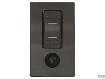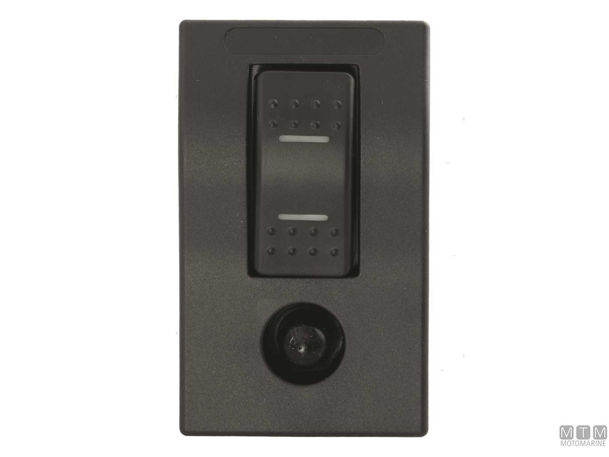 Pannello interruttore per pompe di sentina con interruttore a 3 posizioni (on)-off-on. Plastica stabilizzata resistente UV con guarnizione in Nitrile. Completo di viti, valvola automatica reinseribile da 10A e set etichette.