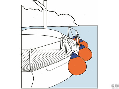 Parabordi a pera di grande robustezza con foro d'attacco rinforzato.