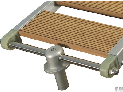 Passerella fissa con telaio in Alluminio Anodizzato e piano in doghe di legno marinizzato.