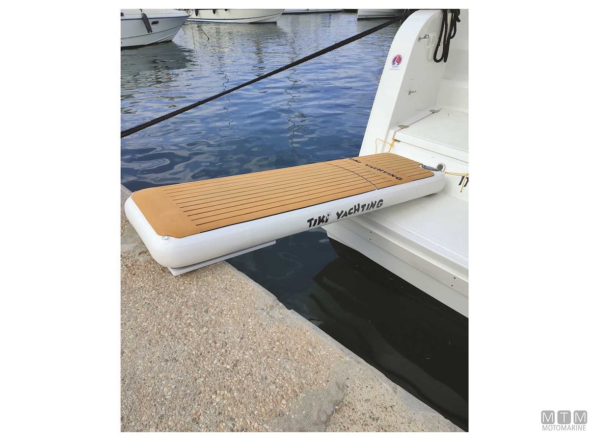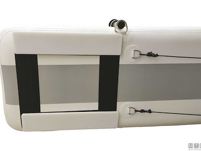 Passerella gonfiabile leggera e versatile, stabile, non necessita di perni, non scivola e non danneggia la poppa. Può essere usata anche come materasso d'acqua, come parabordo fiancata e come piattaforma per la manutenzione dello scafo. Costruita in speciale tessuto multistrato Dropstich spalmato PVC a struttura interna rinforzata, resistente all'usura, ai raggi UV e all'ambiente marino. Completa di anelli in Acciaio Inox, basi banchina rimovibili e kit riparazione. Pressione di gonfiaggio 1000 mbar (15 psi).