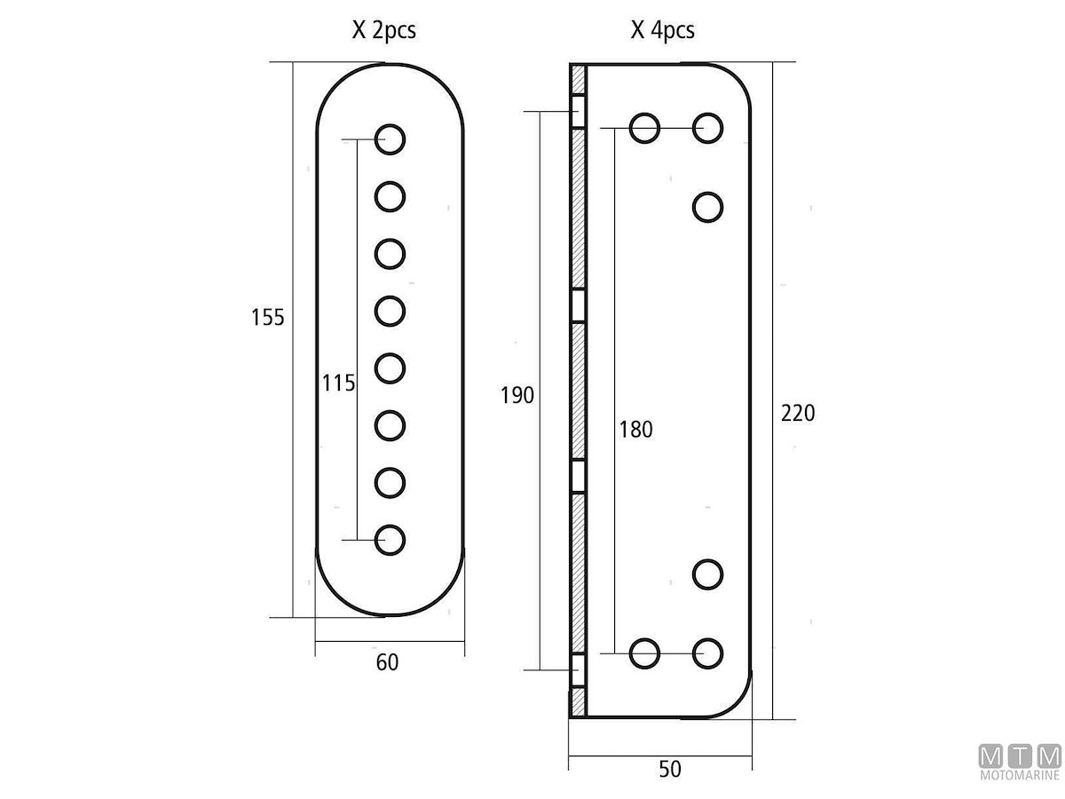 Piastra ad angolo variabile in Alluminio Anodizzato da assemblare per supporti motore fuoribordo. Cod.: 0520550