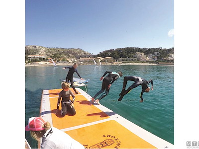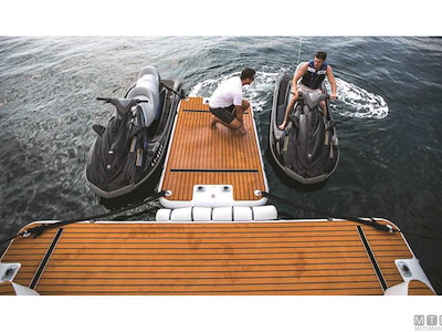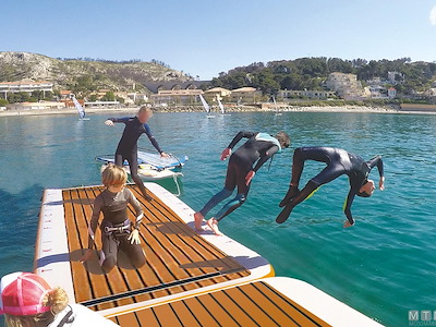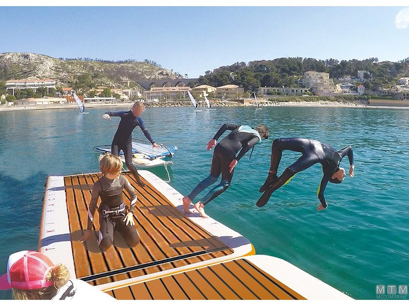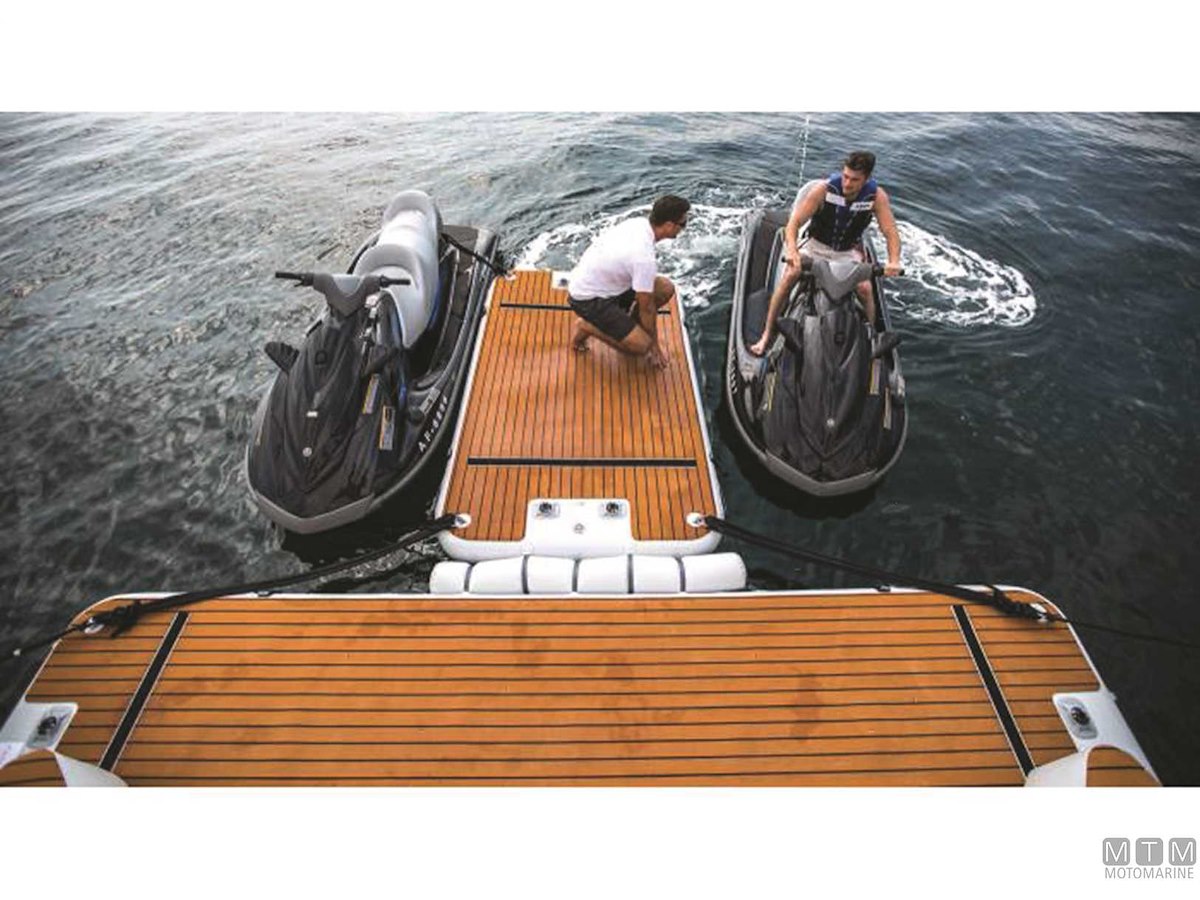 Resistente piattaforma galleggiante in rete di Poliestere Dropstich ad alta resistenza spalmata PVC con struttura interna a nido d'ape. Si può gonfiare e sgonfiare e può essere facilmente piegata con ingombro minimo. Completa con pagliolo antiscivolo in EVA e d-rings in Acciaio Inox per essere assicurata all'imbarcazione oppure ad altre strutture galleggianti o banchine. Può essere usata come piattaforma ricreativa, come materassino d'acqua oppure come piattaforma da manutenzione per lo scafo. Scaletta opzionale in Alluminio 3 gradini facilmente amovibile grazie alle piastre attacco già presenti sui modelli 200/400, da incollare invece sul modello 150.