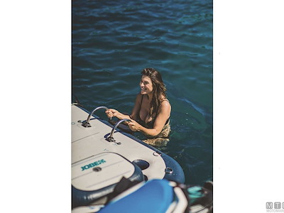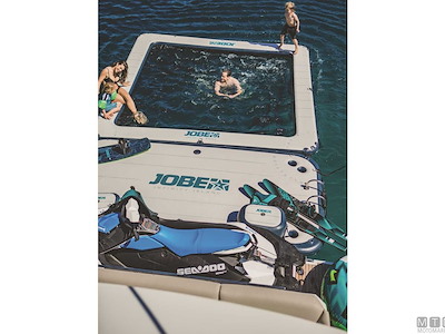 Piattaforma Infinity Jobe ​costruita con tecnologia Heat Bonded di Nylon intrecciato e PVC con nastri di rinforzo sui bordi, con pagliolo antiscivolo in EVA. Facilmente assicurabile alla propria imbarcazione grazie ai numerosi d-rings, permette di estendere lo spazio a disposizione per numerose attività. Presenta inoltre, la possibilità di esser collegata con più piattaforme o con l'Infinity Pool (3020308) in maniera rapida e sicura. Dotata di una durevole scaletta in Acciaio Inox per la risalita, una pompa a batteria (11,6 psi) e una custodia in PVC.