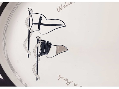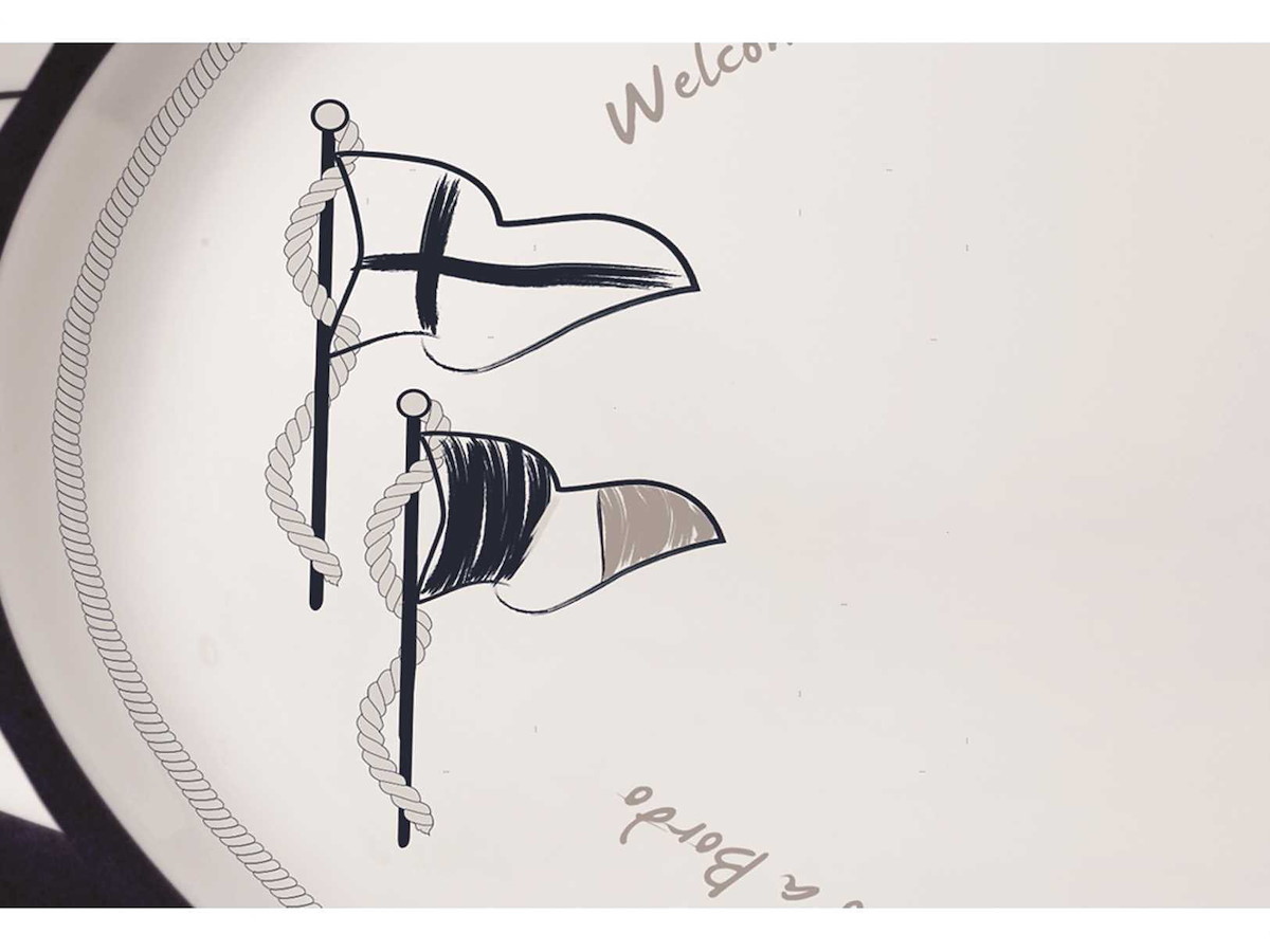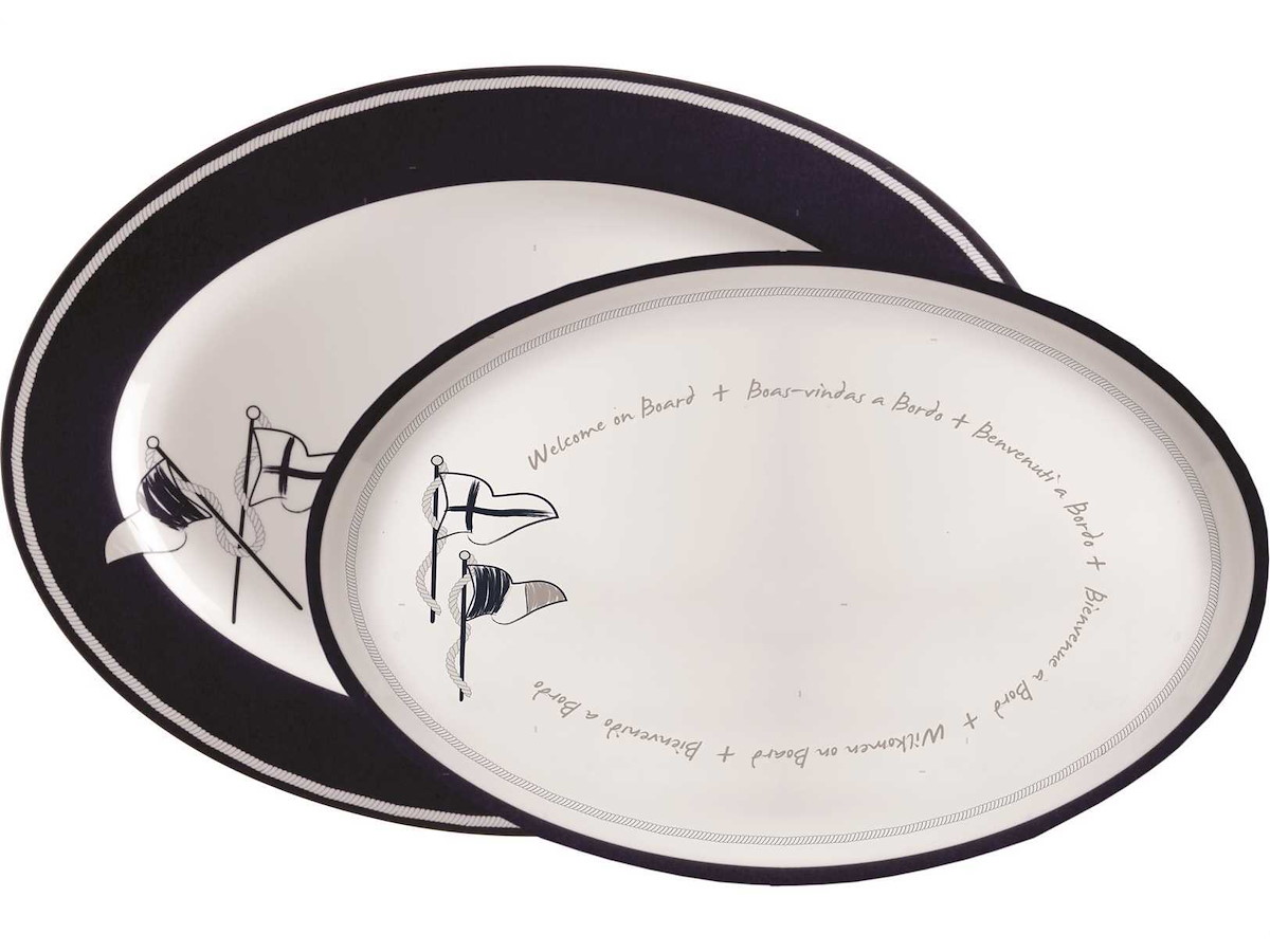 Due piatti da portata con decoro Welcome On Board. In Melamina garantita 100% per uso alimentare. Lavabile in lavastoviglie, infrangibile e anti-macchia.