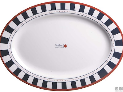 Due piatti da portata con decoro Venezia. In Melamina garantita 100% per uso alimentare. Lavabile in lavastoviglie, infrangibile e anti-macchia.