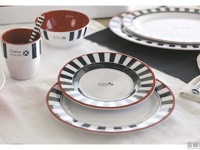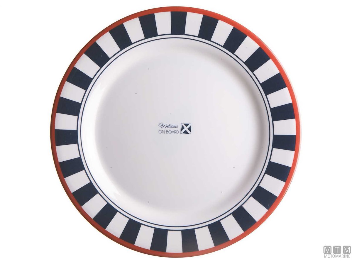 Piatto piano con decoro Venezia e base antiscivolo in confezione da 6 pezzi. In Melamina garantita 100% per uso alimentare. Lavabile in lavastoviglie, infrangibile e anti-macchia.