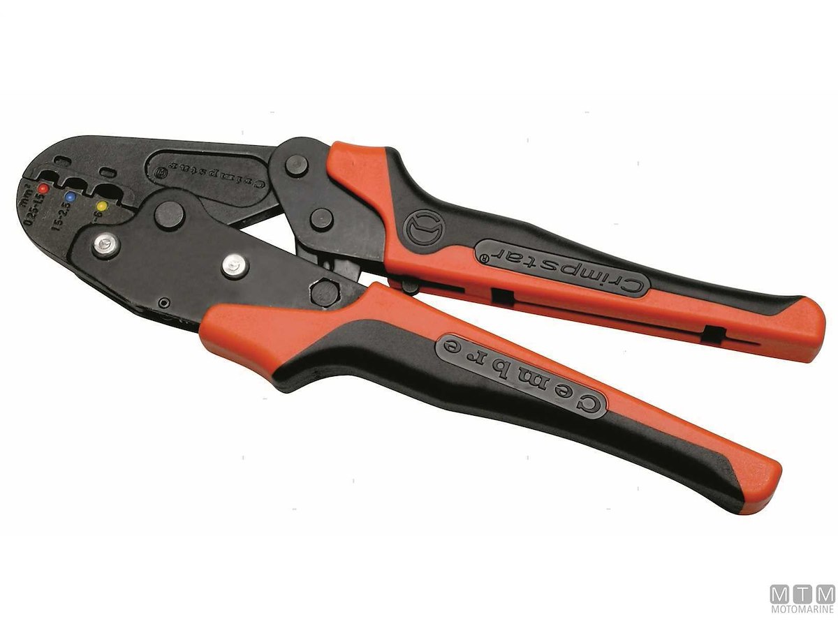 Pinza professionale compatta per capicorda e giunti preisolati da 0,25 a 6 mm2. Testine in Acciaio trattato ad elevate caratteristiche meccaniche. Con dispositivo fine corsa per il controllo della compressione.