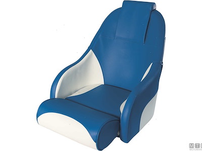 Sedile poltroncina imbottito con scocca in Polietilene. Rivestito in Skay marino. Parte della seduta può essere elevata in modo da favorire il pilotaggio in piedi con appoggio lombare.