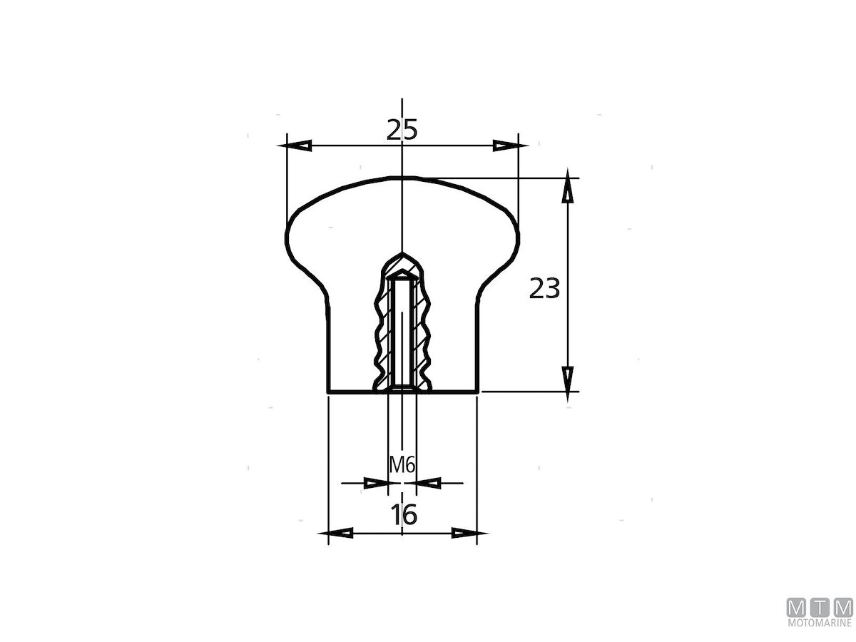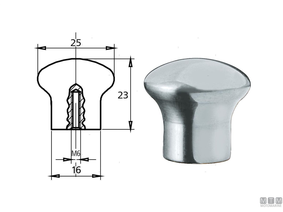Pomolo in Ottone Cromato per portelli e cassetti. Cod.: 0340910 ø mm x H mm: 25 x 23