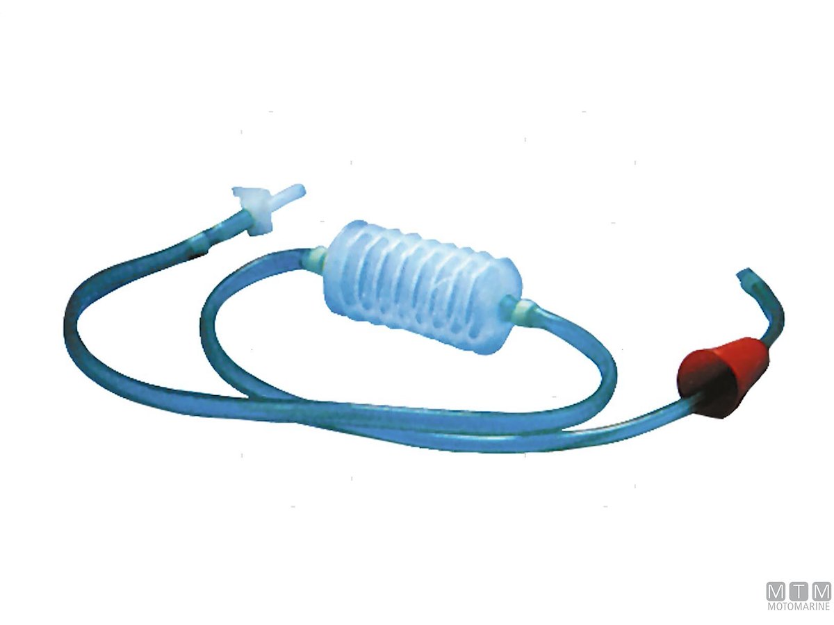 Pompa a soffietto per travaso carburante con valvola di non ritorno e rubinetto.