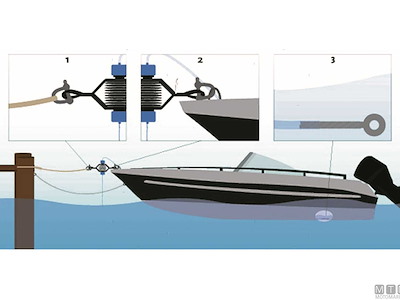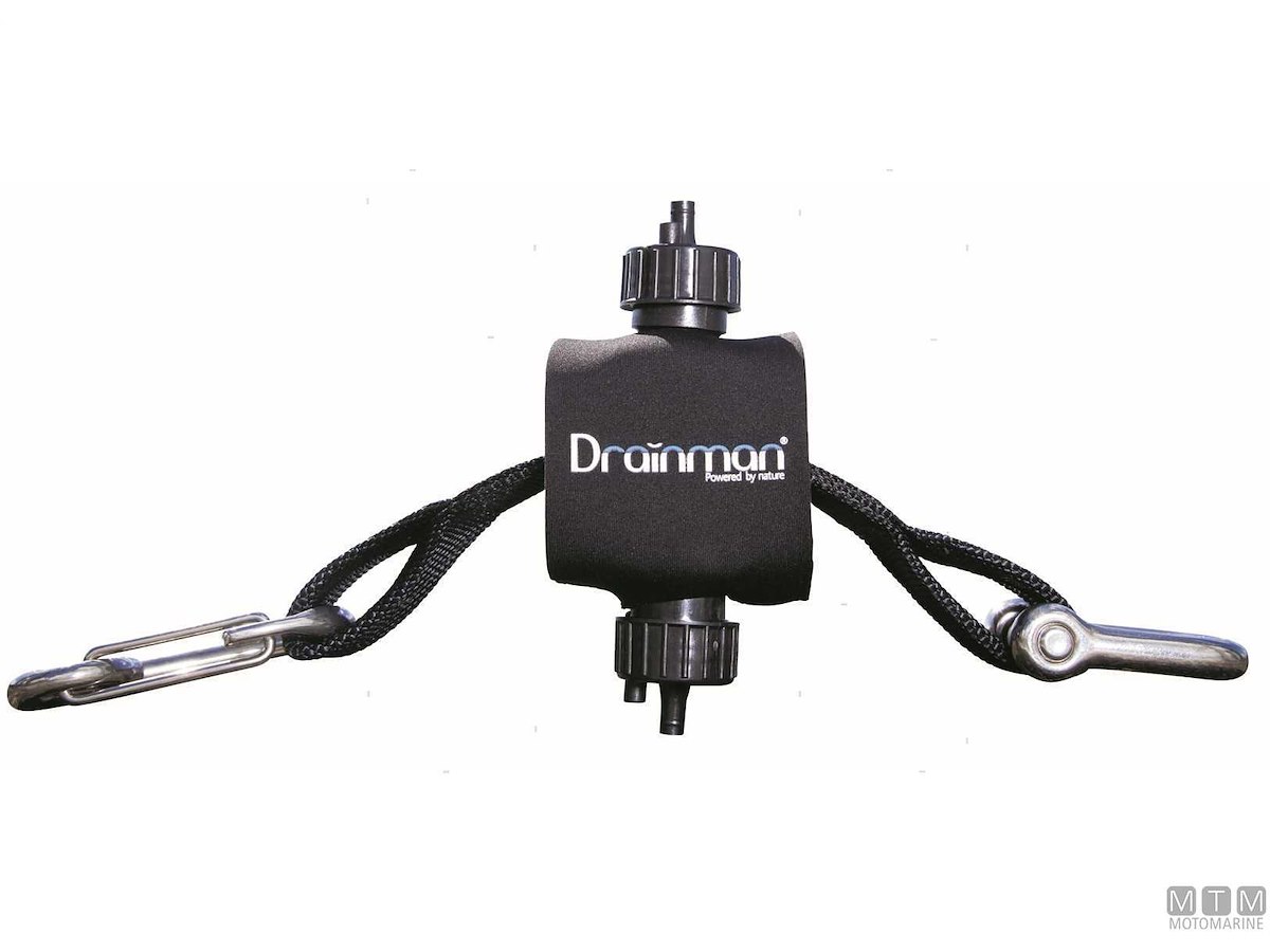 Pompa di sentina e ammortizzatore d'ormeggio Drainman che si attiva con la forza naturale delle onde e del vento tramite la tensione che si genera nella fune di ormeggio. Può pompare fino a 2500 litri di acqua al giorno. Costruita con materiali resistenti, sopporta strappi fino a 1500 Kg. Copertura in Neoprene per una perfetta protezione dai raggi UV e dall'usura.