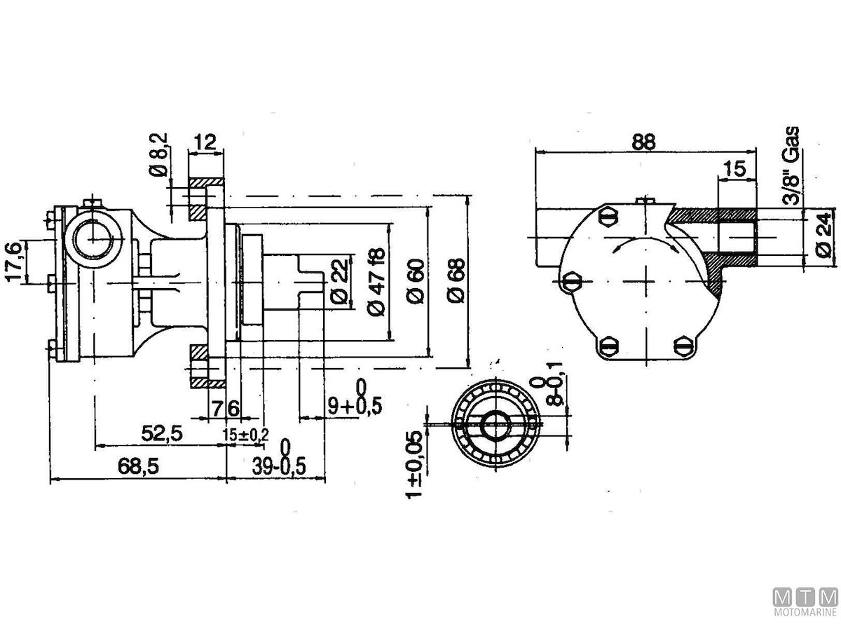 Pompa di raffreddamento in Bronzo con girante in Neoprene.  Johnson ref F4B-9 cod 10-35161-1 / Jabsco ref 29470-2131  Per motori:  Vetus K3/K4/K3D/K4D/M3.10/M4.14