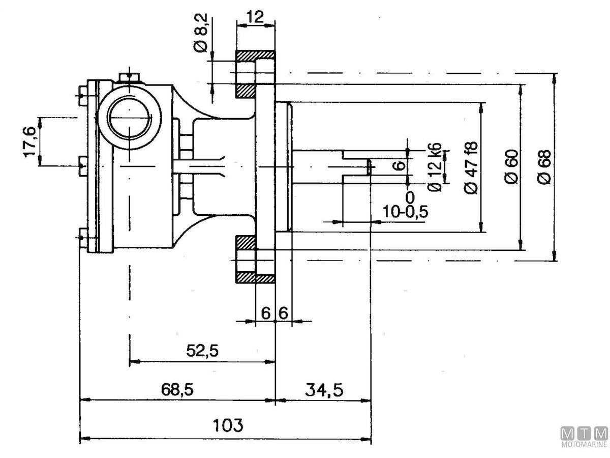 Pompa di raffreddamento in Bronzo con girante in Neoprene.