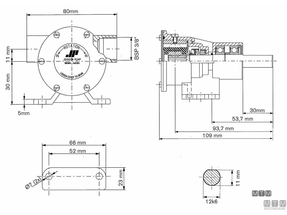 Pompa di raffreddamento in Bronzo con girante in Neoprene. Johnson ref 10-24569-01.