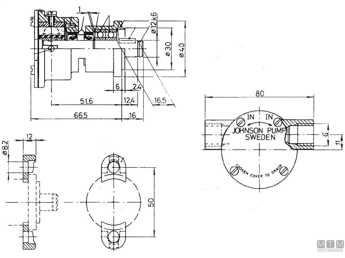 Pompa di raffreddamento in Bronzo con girante in Neoprene.  Johnson ref 10-35187-4  Farymann Diesel ref 538.014.1  Primo impianto per motori Farymann Diesel K34