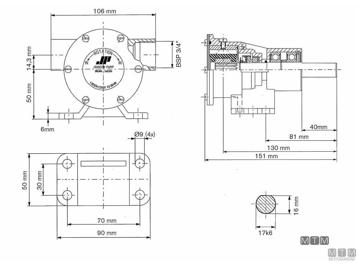 Pompa di raffreddamento in Bronzo con girante in Neoprene. Johnson ref 10-24571-01.