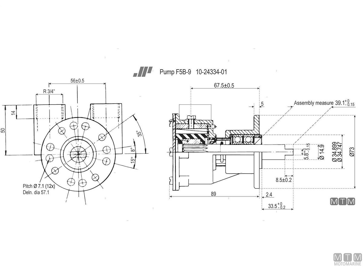 Pompa di raffreddamento in Bronzo con girante in Neoprene.