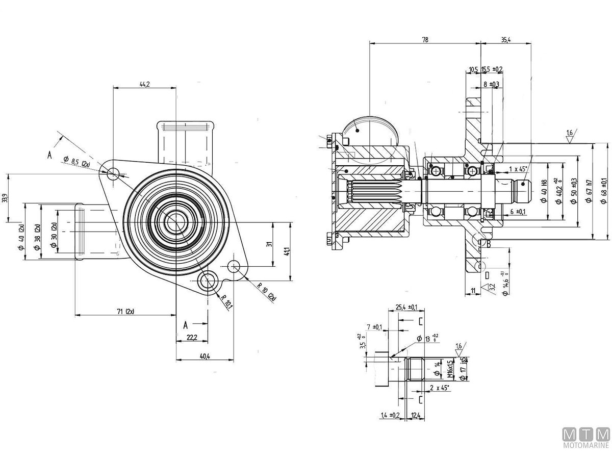 Pompa di raffreddamento in Bronzo con girante in Neoprene.