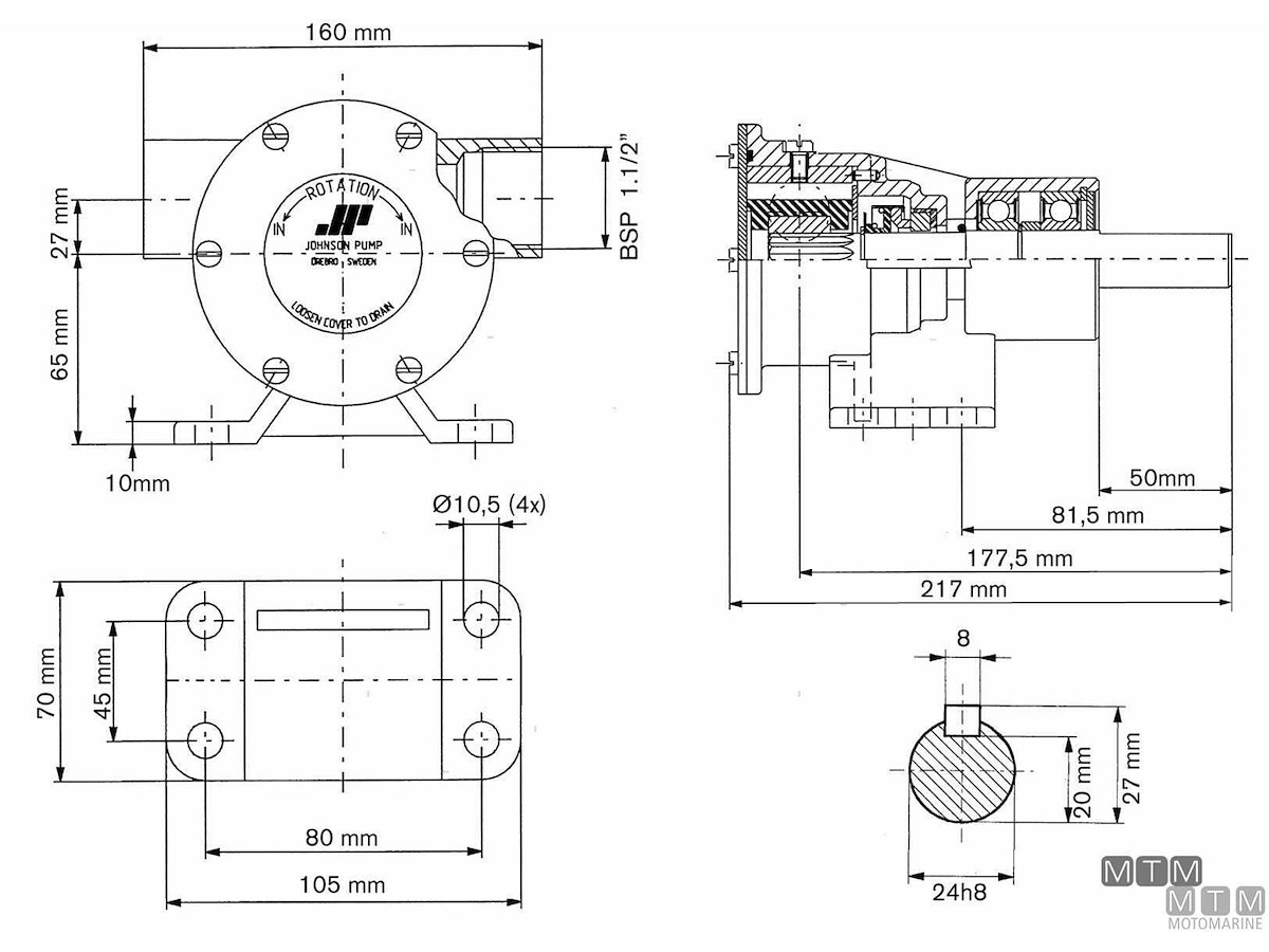 Pompa di raffreddamento in Bronzo con girante in Neoprene. Johnson ref 10-13021-01.