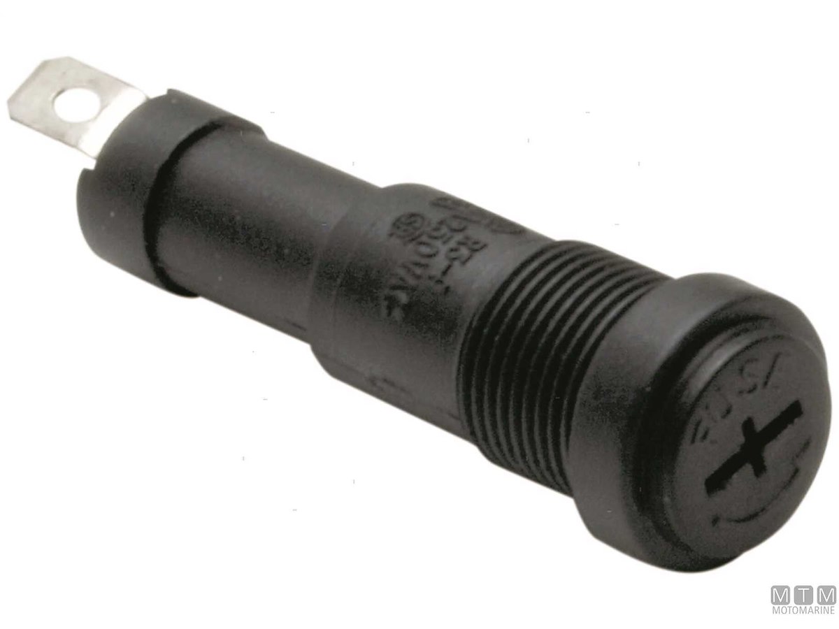 Portafusibili da pannello per fusibili in Vetro. Coperchio piatto tondo. Cod.: 2101652 Foro ø mm: 12
