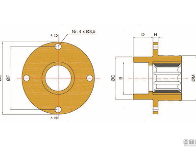 Cod.: 4900666Asse ø mm: 66,67 (2''5/8)M mm: 113B mm: 103 x 2C mm: 99E mm: 162F mm: 145D mm: 43H mm: 10