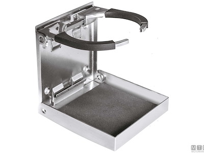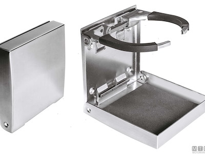 Portabicchieri e lattine pieghevole in Acciaio Inox. Cod.: 5805080 Chiuso dim mm: 96 x 100 Aperto profondità mm: 103