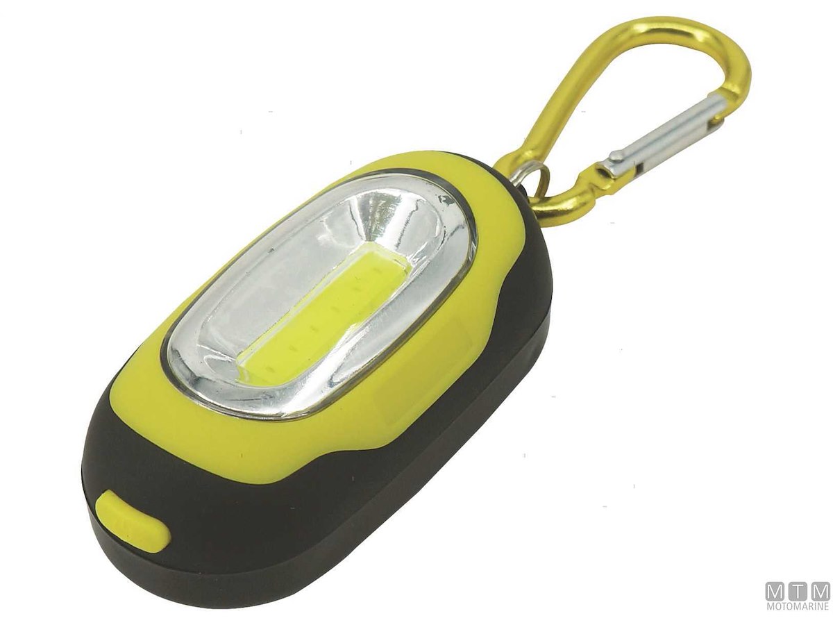 Portachiavi con moschettone in Alluminio e luce LED a tre modalità intensa/normale/SOS. Grazie alla base magnetica può essere tolto dal moschettone e posizionato dove necessario. Completo di 2 batterie AAA.
