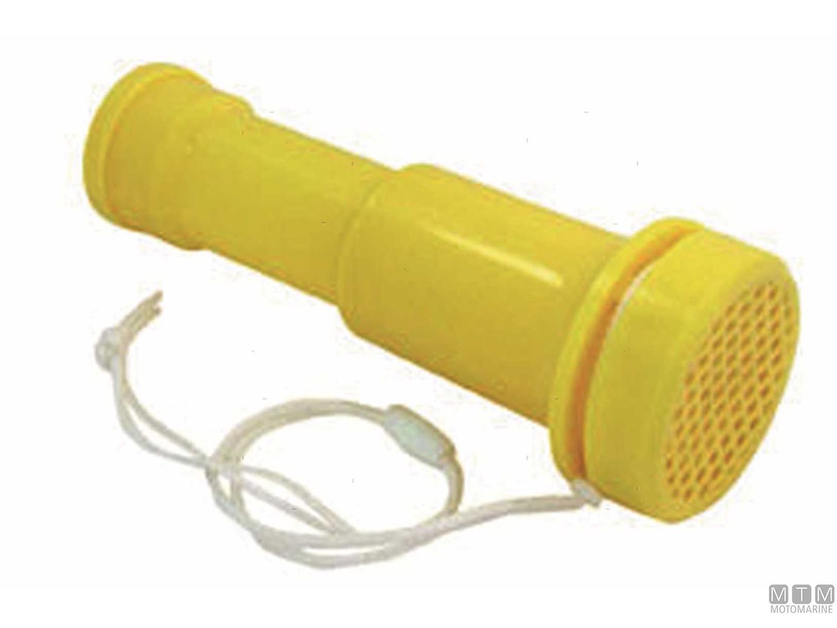 Corno da nebbia in Plastica rinforzata dal suono molto potente e penetrante. Il suono si ottiene soffiando nel forellino presente di lato.
