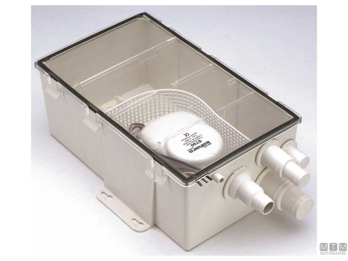 Pozzetto raccolta acque grigie e scarico doccia Attwood completo di pompa automatica di scarico, coperchio con guarnizione a tenuta stagna, sfiato d'aria e bocca di scarico da 3/4"(20 mm).