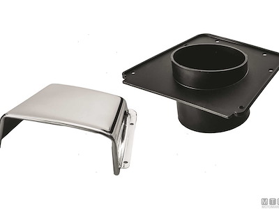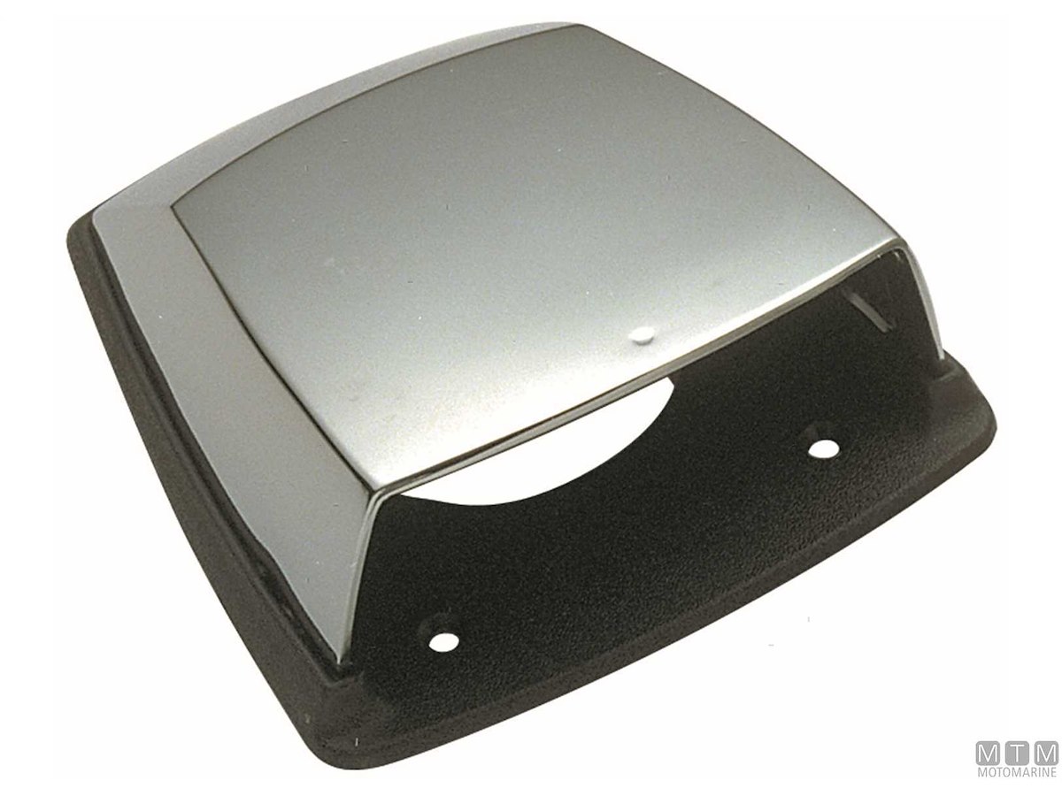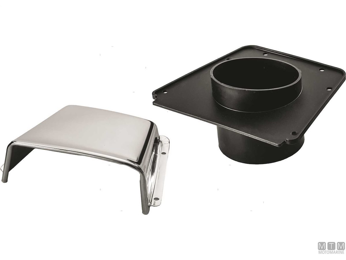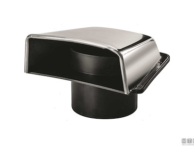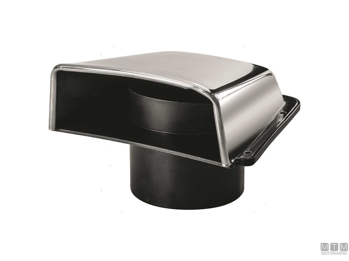 Presa d'aria in Acciaio Inox lucidato a specchio con grande bocca di ventilazione e attacco per tubo convogliatore aria ø 75 mm. Altezza su coperta 55 mm.