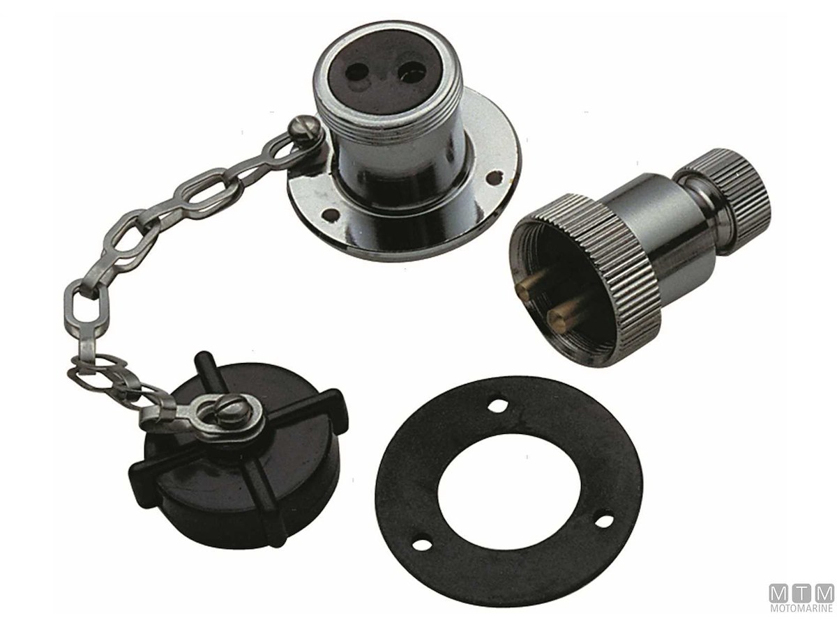 Presa e spina impermeabile da ponte per corrente continua max 3A in Ottone Cromato.