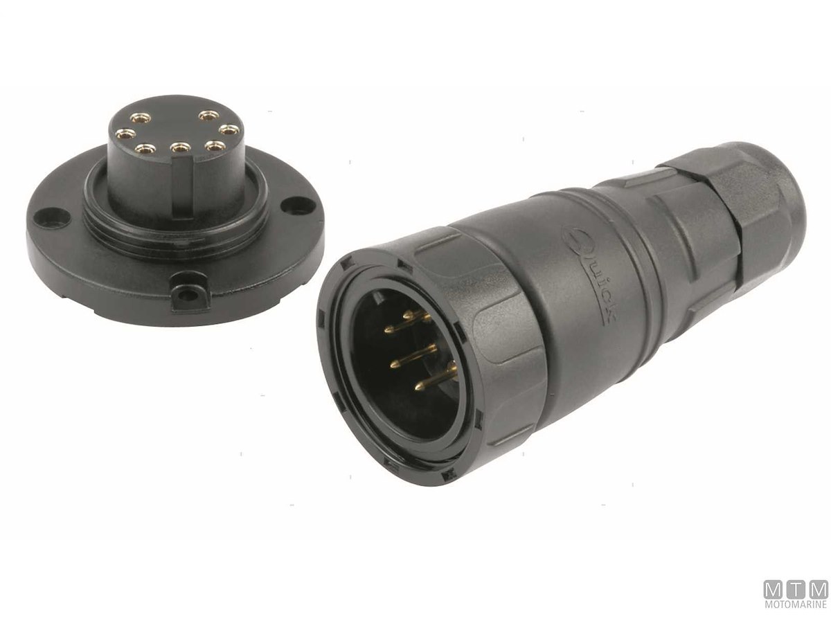 Presa e spina impermeabile IP67 in Policarbonato per corrente continua max 16A. Dotata di contatti Hypertac ad alta portata e continuità elettrica.