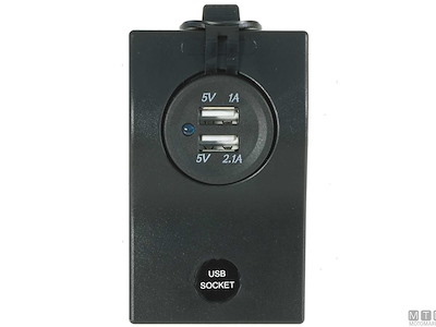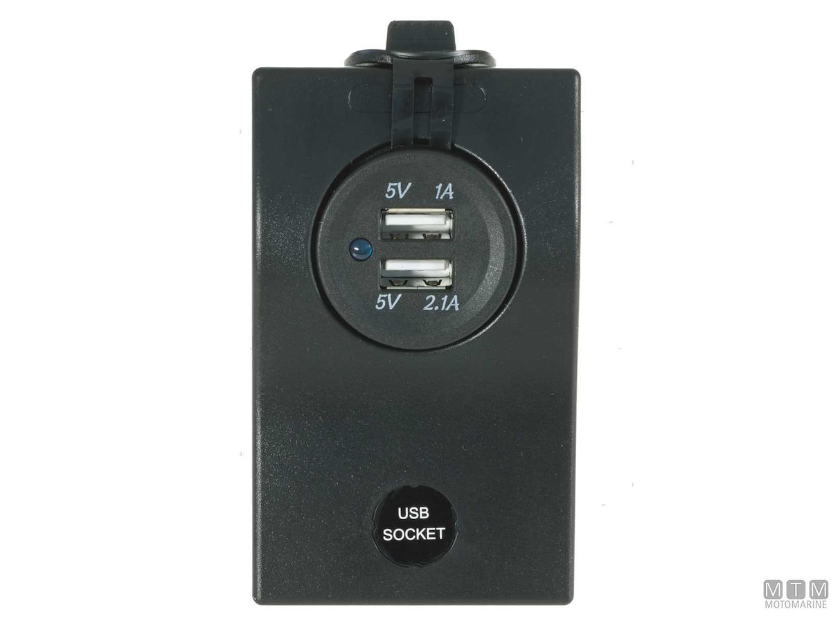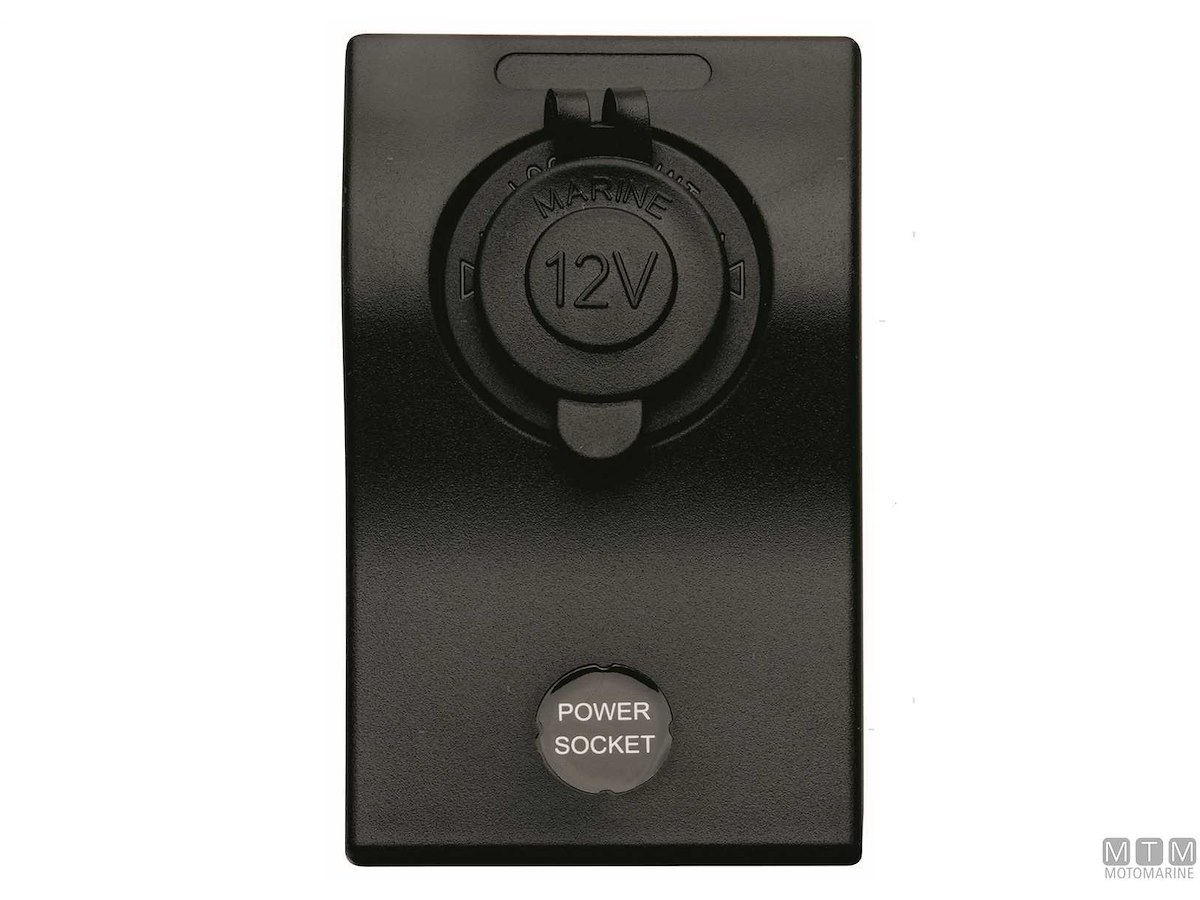 Pannello con presa 12V tipo accendino in plastica stabilizzata UV con guarnizione in Nitrile e cappuccio di protezione stagno. Con viti in Acciaio Inox, valvola automatica reinseribile ed etichetta prestampata.