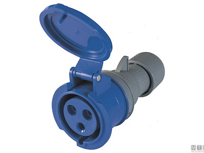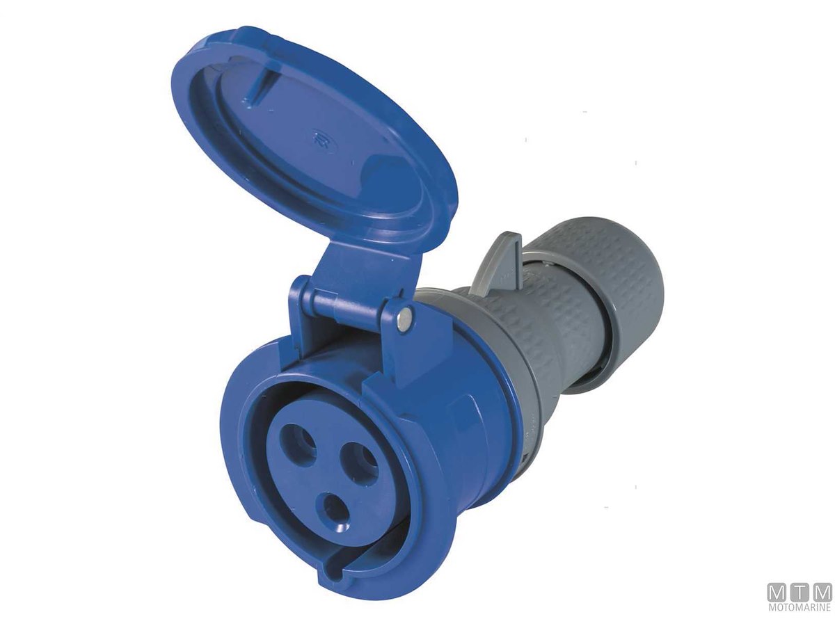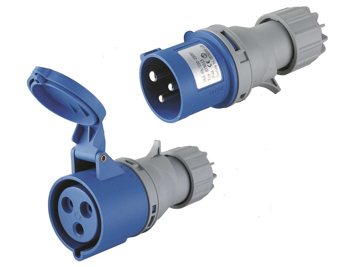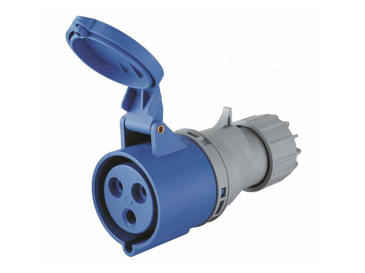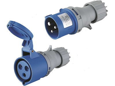 Prese e spine IP44 certificate CE/IMQ costruite in PA6 antiurto autoestinguente. Complete di fermo anti estrazione involontaria e ghiera serracavo senza utilizzo di attrezzi.