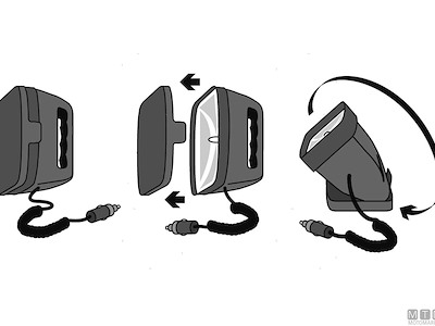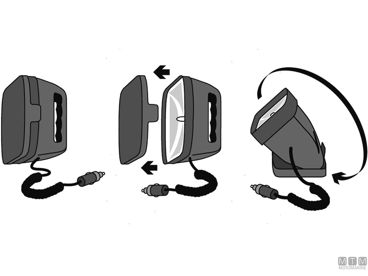 Proiettore con lampada al Quarzo 12V, cavo estensibile e presa.
