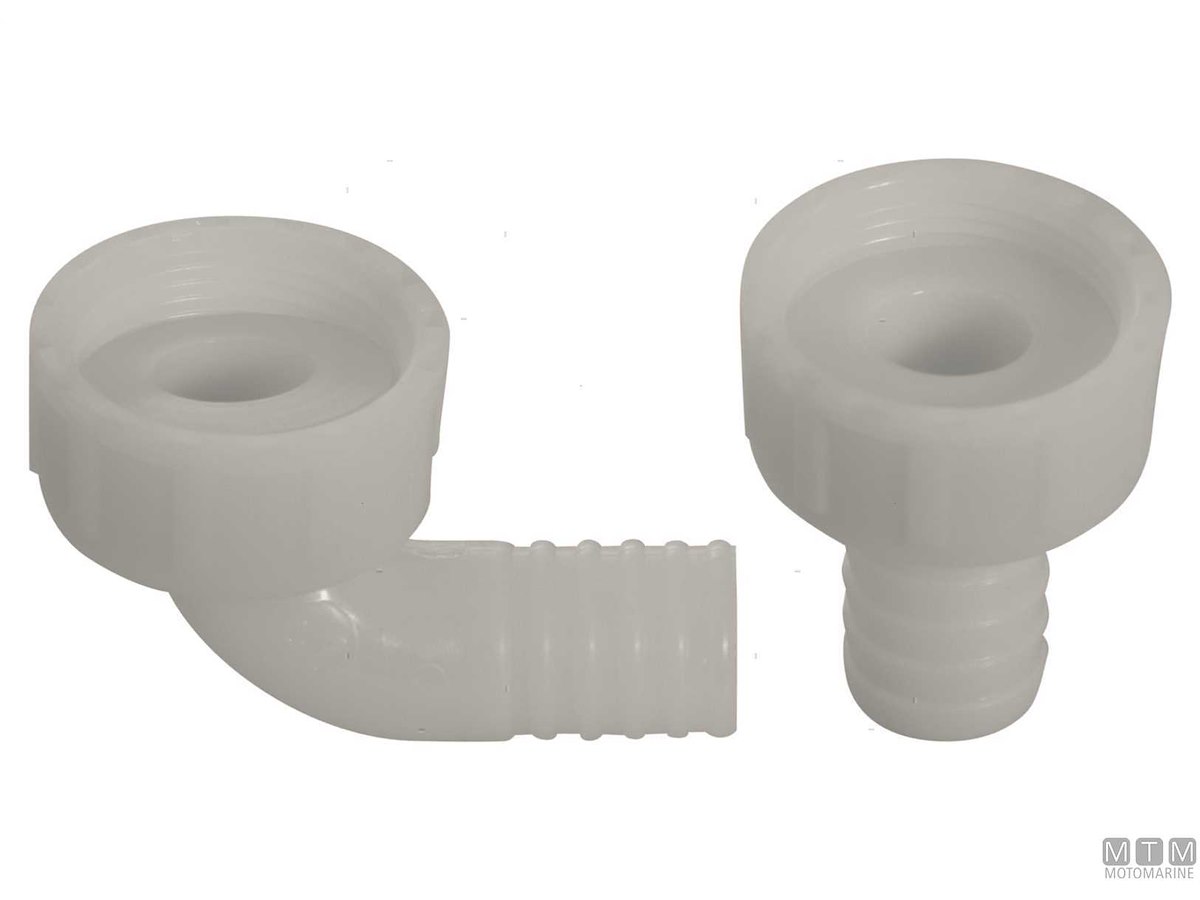Raccordi di scarico con ghiera filettata 1"1/4 e portagomma da 25 mm.