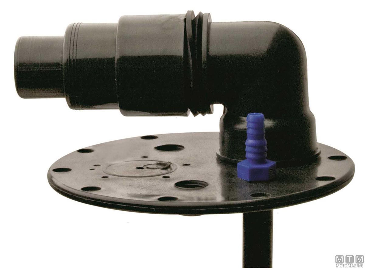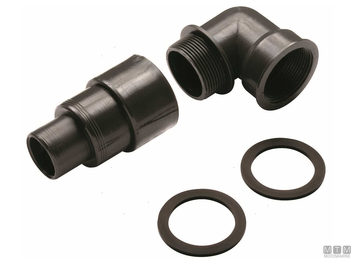 Raccordo portagomma di carico per serbatoi acqua potabile. Può essere montato sul boccaporto in posizione dritta oppure angolata. Composto da due parti entrambe filettate 1"1/2 femmina complete di guarnizione.