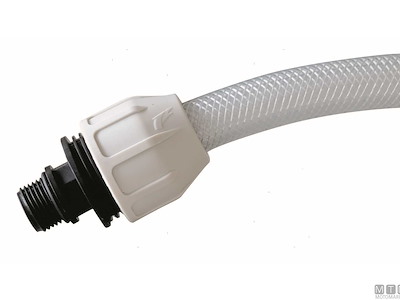 Raccordo a innesto rapido in Polipropilene caricato. Connette velocemente qualsiasi tipo di tubo flessibile ed elimina la fascetta stringitubo. Tenuta stagna fino a 16 bar.